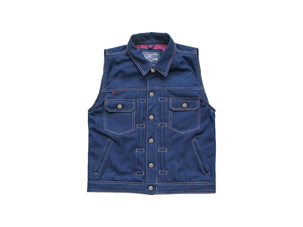 Džínová vesta 13 1/2 Rain-Splitter není nepromokavá, jak by název mohl napovídat; ale je pojmenována po chopperu Rain-Splitter od Luuka, který byl uveden v časopise 13 and a Half Magazine #12. Tato vesta je vyrobena z 14 oz. Tennessee denimu; a chopper Rain-Splitter je natištěn na podšívce. Na přední straně je zip a patentky a zipy jsou na bočních a vnitřní kapse. K dispozici také v černé barvě. Už nehledejte: toto je vaše nová oblíbená džínová vesta!