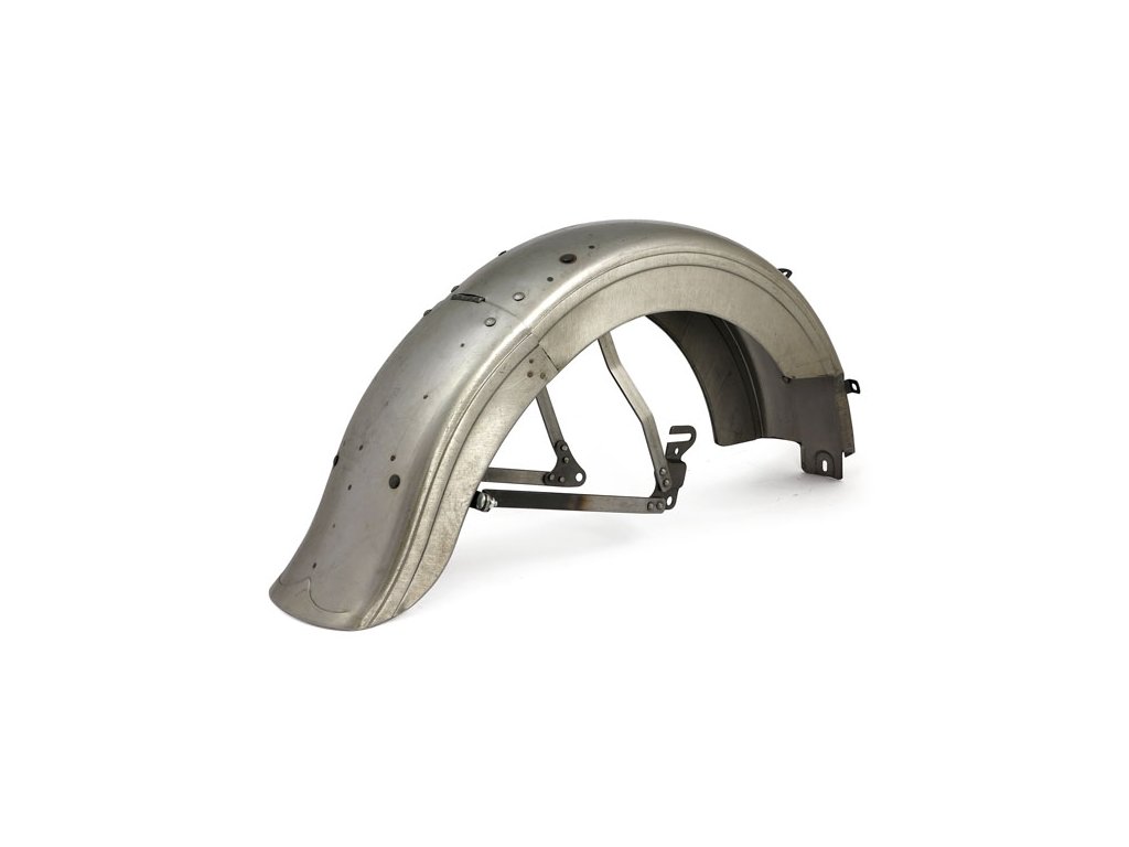 Surová ocel. Reprodukce kloubových zadních blatníků, které byly použity na modelech 37-46 45 Cu.I. (750cc) boční ventil. Náhrada OEM reference 59612-41 (3710-41).