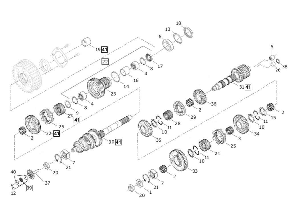 6-rychlostní převodovka, často označovaná jako “Cruise Drive“, byla představena v roce 2006 na modelech Dyna a od roku 2007 je běžná na všech modelech Dyna, Softail, Touring a Trike. Pokud není uvedeno jinak, díly se prodávají jednotlivě. Pokud je v jedné převodovce použito více než jeden kus, požadované množství je uvedeno v závorkách, například (2).