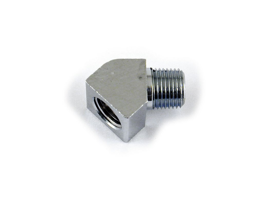 Závit 1/8 NPT samec na 1/8 NPT samice. Používá se jako 45° adaptér pro lepší pozorovací úhel na olejoměr během jízdy.