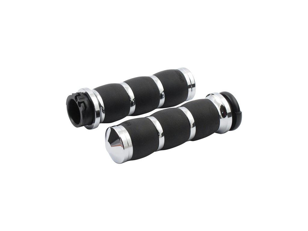 Vzduchové odpružení pro vaše ruce. Vyrobeno v USA a funkční s skvělým pocitem. Pryž speciálních jádrových tyčí se používá k vytvoření vzduchové kapsy uvnitř těla gripu; což zlepšuje jízdu obecně a pomáhá eliminovat pocit brnění, který můžete mít po dlouhé jízdě. Měkká vroubkovaná textura pro neklouzavou ruku. Chromované koncovky a objímky z hliníkového sochory 6061 jsou příjemné na pohled. - Pro řídítka o průměru 1 palec.