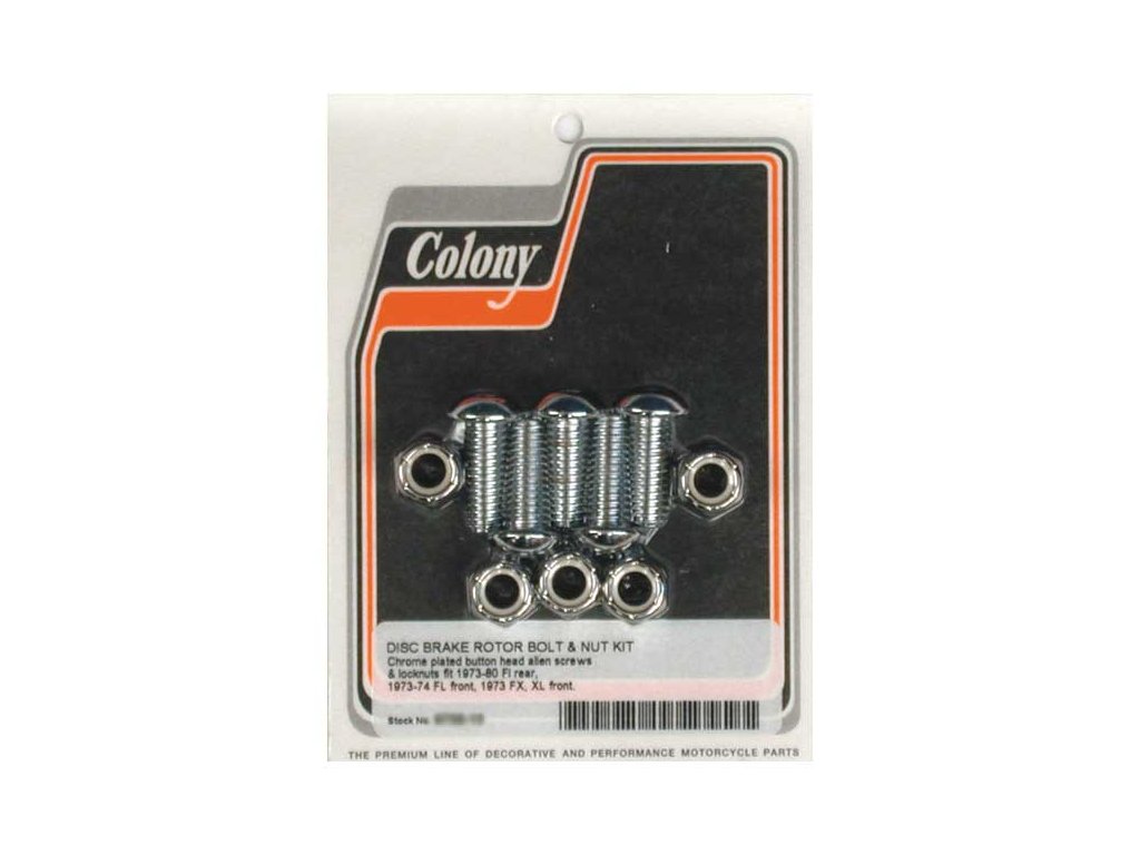 Colony, sada šroubu a matice předního/zadního brzdového kotouče. Chromovaný knoflík