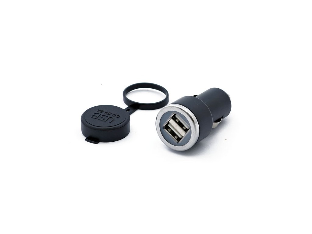 Černá. Dual port USB nabíječka. Výstup 5V 2Amp; vstup 12V-24V. Pasuje do všech běžných napájecích bodů / zásuvek zapalovače cigaret.