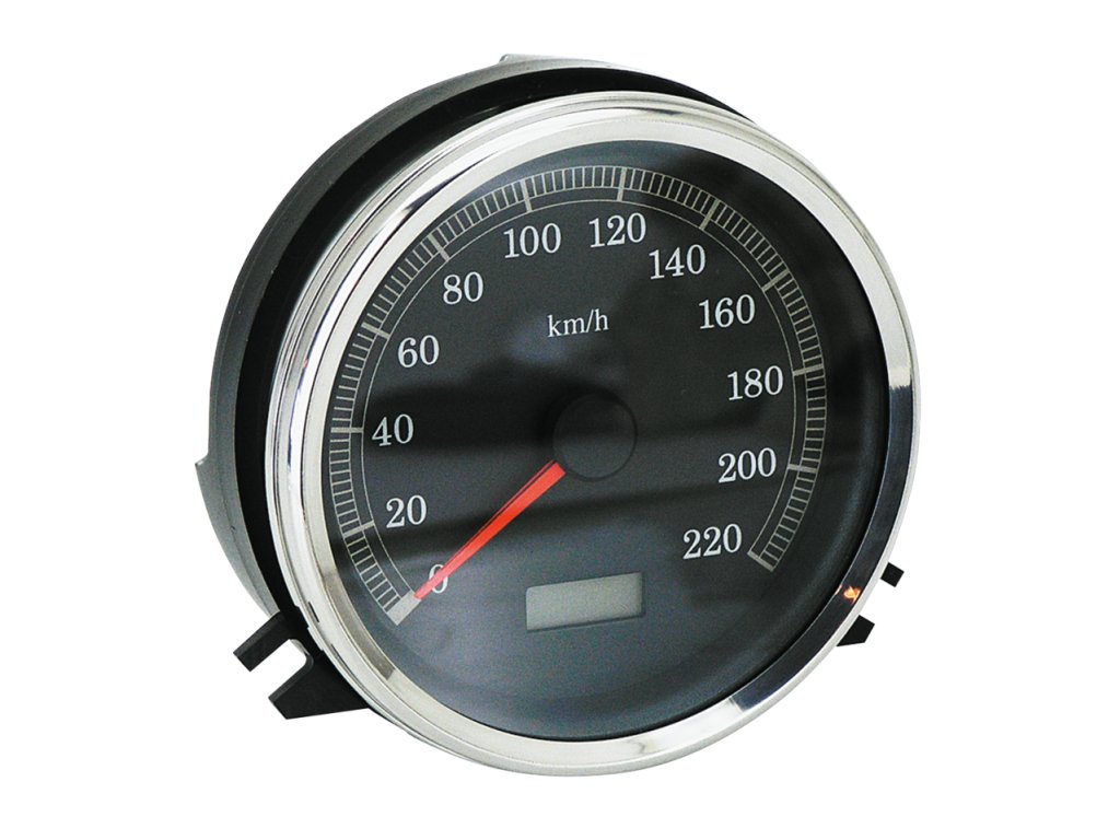 Elektronicky řízený rychloměr s černým ciferníkem a digitálním počítadlem ujetých kilometrů pro použití na modelech Softail, Road King a FXDWG Dyna Wide Glide z let 1996-2003, které jsou vybaveny standardním snímačem rychlosti převodovky. Měřidlo má průměr 4 1/2“ (11.5cm), pasuje na standardní palubní desku a je vybaveno přímým konektorem, který se nachází na modelech z let 1999-2003. Instalace na modely z let 1996-1998 vyžaduje buď opětovné použití kabelového svazku ze standardního rychloměru a krimpování naší 12-pinové konektorové sady ZPN701626, nebo modelově specifickou sadu konektorů Plug & Play.