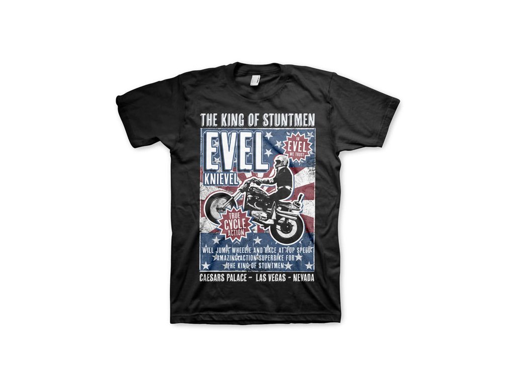 Evel Knievel! Kdo ho nezná nebo o něm neslyšel. Tento muž je legenda! Byl nejlépe známý svými dálkovými skoky na motorce: jeho 50metrový skok přes Caesarovu fontánu v Las Vegas 31. prosince 1967; ho proslavil; i když jeho pád způsobil měsíční kóma. Ale nyní můžete nosit trička; mikiny a mikiny s kapucí s potiskem velké legendy. Vyrobeno ze 100% bavlny a s normálním střihem. Nebo si vyberte jednu z trucker čepic a samozřejmě můžete mít ranní kávu s Evel Knievel, pokud chcete. A v neposlední řadě můžete nálepky Evil Knievel umístit téměř kamkoli. Volba je na vás!