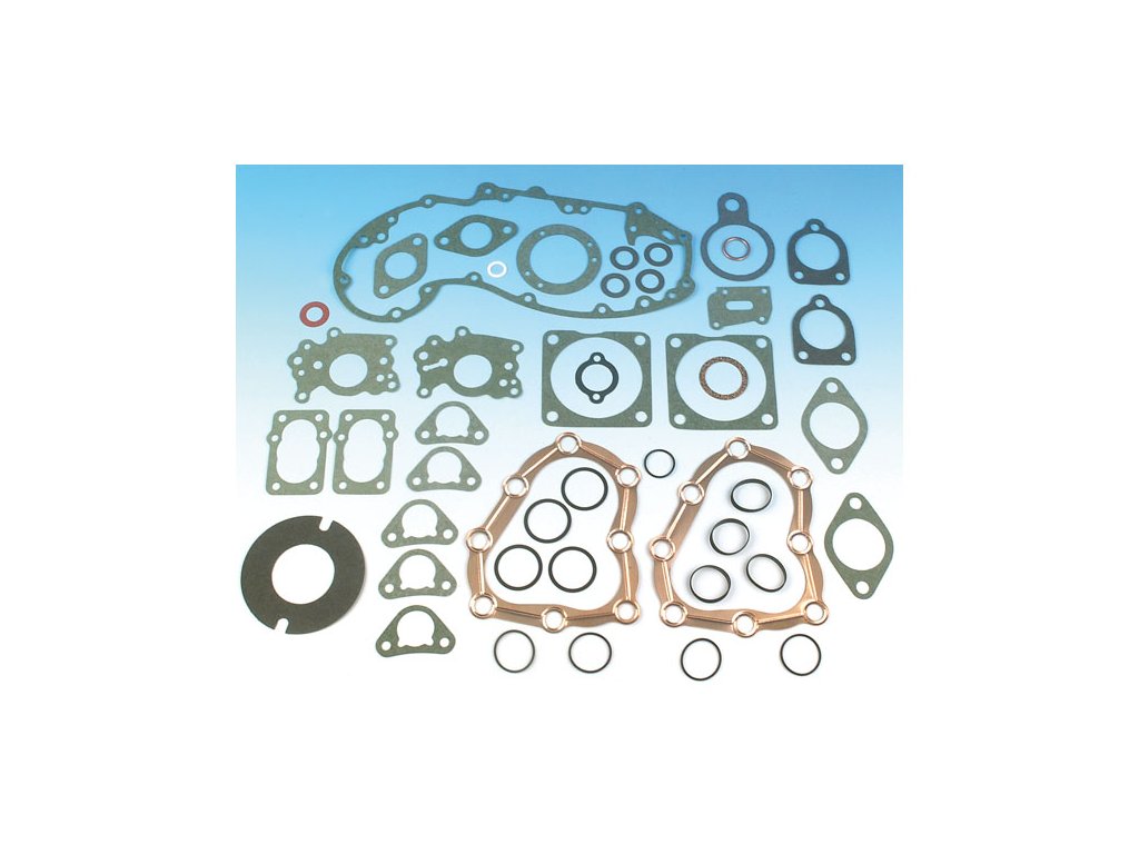0.020“ embosovaná měděná těsnění hlavy válce. Zahrnuje těsnění olejového čerpadla s boční montáží raného i pozdního stylu; a všechna ostatní těsnění; simerinky a O-kroužky pro kompletní generální opravu motoru. Zahrnuty jsou také těsnění sání/plovákové komory pro karburátory Linkert. Náhrada OEM reference 17026-40 (53-40)