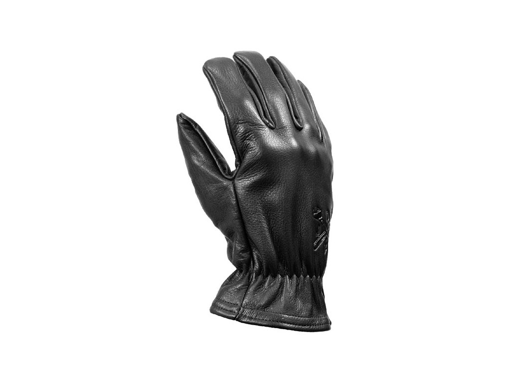 Černá použitá hovězí vintage kůže; předtvarované ergonomické rukavice (tloušťka 1-1.1 mm) s volným popruhem s dvojitým švem. Výztužná podšívka je vyrobena ze 100% DuPont™ Kevlar®.