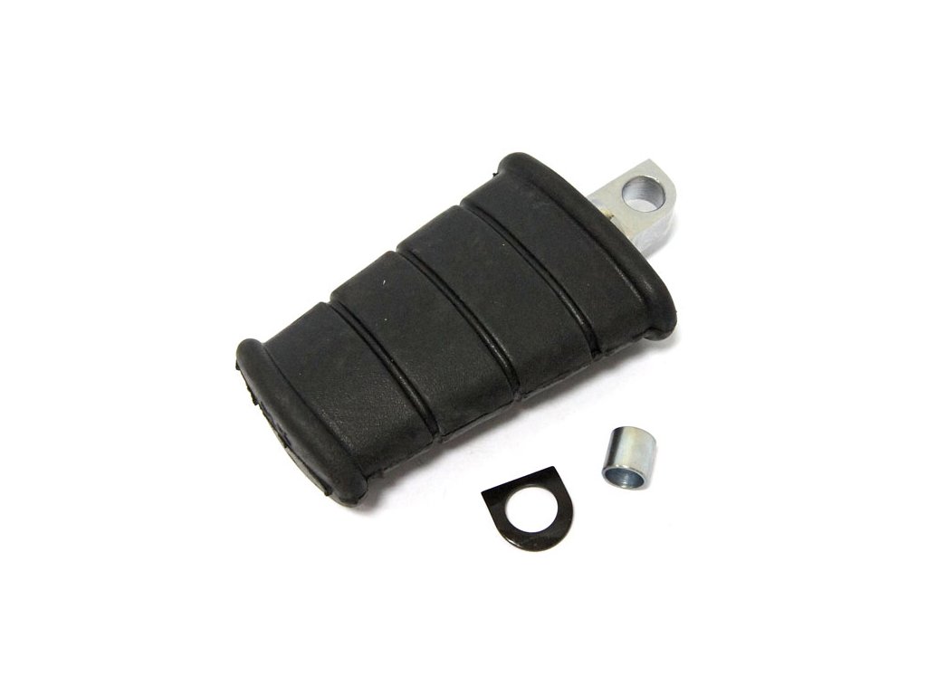 Černá guma s chromovaným kovovým otočným čepem. Reprodukce ve stylu OEM. Zahrnuje pouzdro čepu pedálu 33213-31 a pružinovou podložku 33215-30. Náhrada OEM reference 33175-16A; 33175-16B.