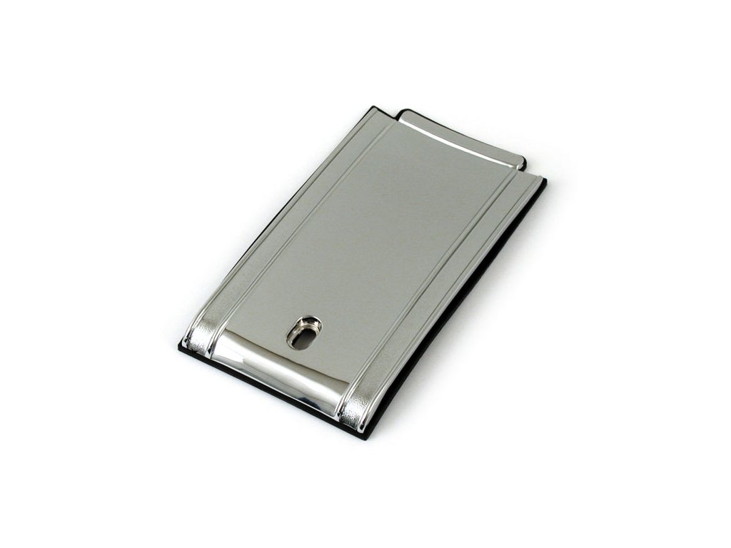 Chromováno. Litý hliník. Přímá náhrada za černý gumový palubní panel. Pasuje také na dřívější modely s duálními palivovými nádržemi stylu Fat Bob, pokud je vyvrtán a vyřezán otvor pro montáž tohoto panelu.