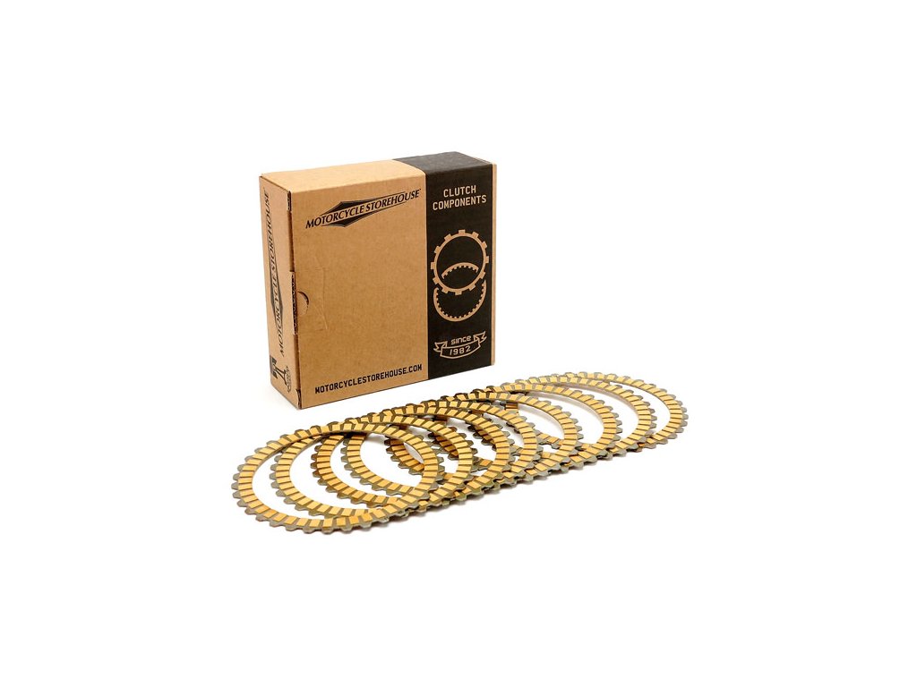 Sada 8 třecích lamel. Třecí lamely Motorcycle Storehouse jsou vysoce kvalitní a vyvinuté v prostředí dynamického testování. Poměr cena/kvalita je zjevně vyšší než průměrné standardy. Sady třecích lamel jsou vyrobeny z organického třecího materiálu; spojeného s tvrzenou hliníkovou základnou. Perfektní pro jakoukoli standardní náhradu a lze je; stejně jako OEM; provozovat mokré i suché. Náhrada OEM reference 37911-90.