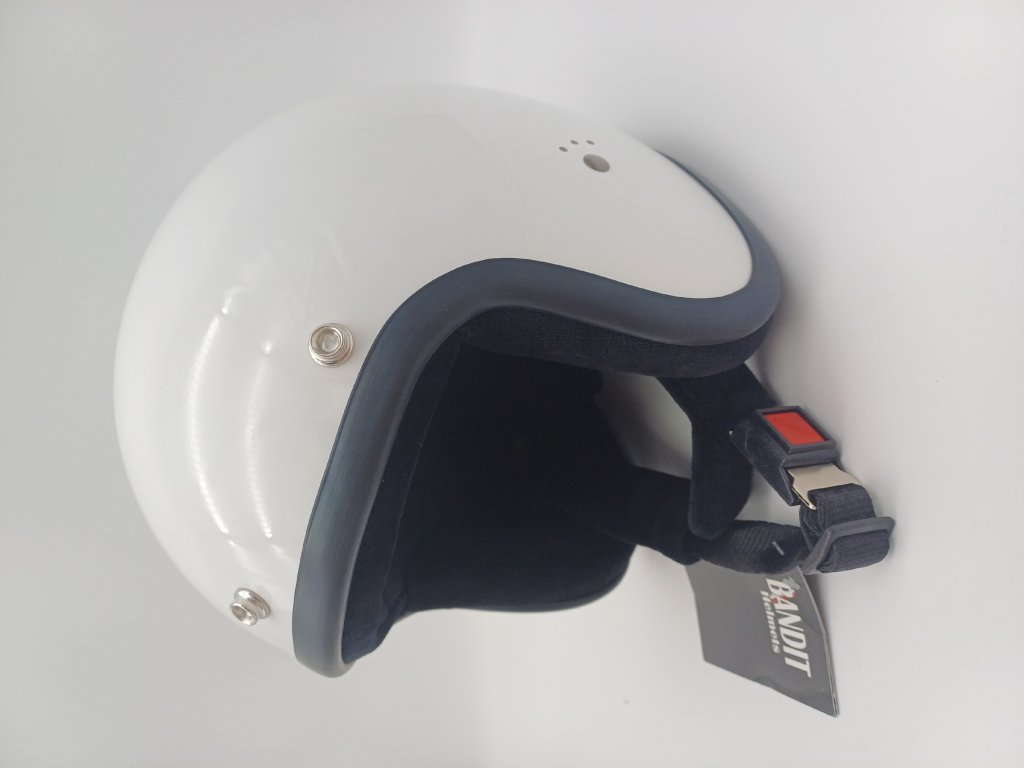 Přilby s tenkým, klasickým designem. Vyznačují se lehkou konstrukcí s velmi malou vnější skořepinou, která stále poskytuje dobrý komfort. Všechny verze jsou dodávány s odnímatelným kšiltem na 3 patentky a rychloupínacím bradovým páskem.Tato přilba je bez homologace,leskle bílá, ze sklolaminátu. Velikost XL= obvod hlavy 61-62cm.Helma váží 800g.Doplňkové parametry