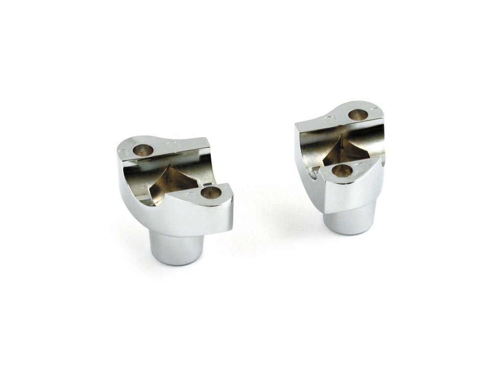 Reprodukce představců ve stylu OEM. Litý hliník. Bez závitu; upevňuje se průchozím šroubem a maticí. Pro řídítka s upínací plochou o průměru 1“ (25.4mm). Požadovaná jednodílná horní svorka řídítek musí být zakoupena zvlášť. Náhrada OEM reference 55940-77A (OEM je chrom).
