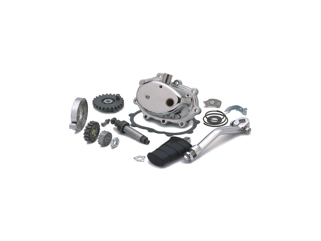 S leštěným koncovým krytem. Kompletní sada kickstartu se vším, co potřebujete pro úspěšnou instalaci. Pasuje na všechny 4-rychlostní modely Big Twin a custom motocykly, které používají 4-rychlostní převodovku. Může být nutná menší úprava při montáži na modely Electra Glide s některými crossover výfukovými systémy. Náhrada 33055-78A.