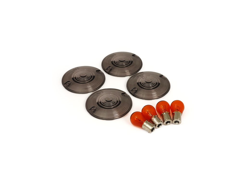 Dodává se se čtyřmi kouřovými náhradními čočkami a čtyřmi žlutými žárovkami blinkrů. S čočkami schválenými ECE. Náhrada OEM reference 69308-02.