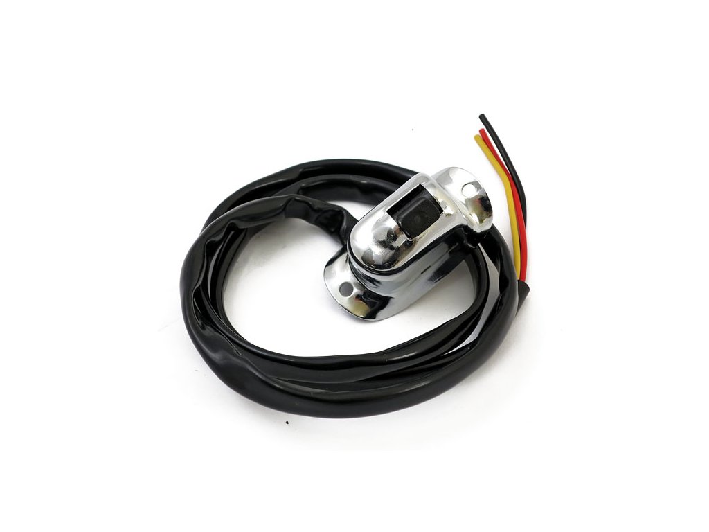 S 28“ (71cm) kabeláží. Chromovaný ocelový kolébkový spínač. Toto je reprodukce spínače na řídítkách, jaký se používal na raných modelech H-D. Skvělý také pro použití v custom aplikacích. Náhrada ve stylu OEM pro 71840-29. Poznámka: instalace vyžaduje vrtání dvou otvorů.