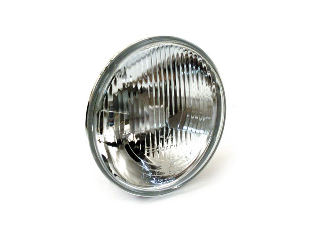 Vložka světlometu schválená ECE. Žebrované sklo. S pozičním světlem. Používá se s halogenovou žárovkou H4 55/60W dálkové/potkávací světlo.