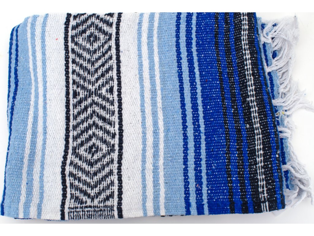 Tradiční mexická tkaná deka se vzory-světle modrobílá
